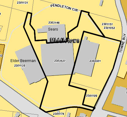 Sears & Elder-Beerman are set up the same way according to the Warren County website. This is the Towne Mall set up: http://webmap1.co.warren.oh.us/flexviewer/index.html?config=config-auditor.xml - http://webmap1.co.warren.oh.us/flexviewer/index.html?config=config-auditor.xml